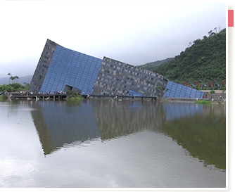 蘭陽博物館-其外部建築景觀乃採用單面山造型的斜屋頂為主體風格,館外周圍保留烏石礁遺址溼地生態公園,本著「與環境共生」、「與自然融合」的精神,呈現溼地豐富生態與低海拔原生樹種及森林景觀等多樣的自然生態環境。